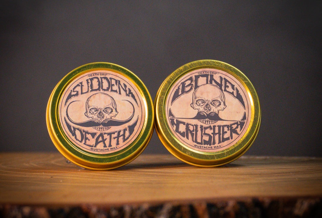 Bone Crusher Extra Strong Extra Firm (1oz) & Sudden Death Strong Hold (No Heat Required - 1oz) Mustache Wax Combo