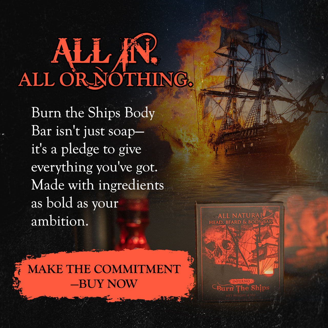 Burn The Ships All Natural Head, Beard, and Body Bar, 4 oz | Inferno Classic Spice Warm Scent