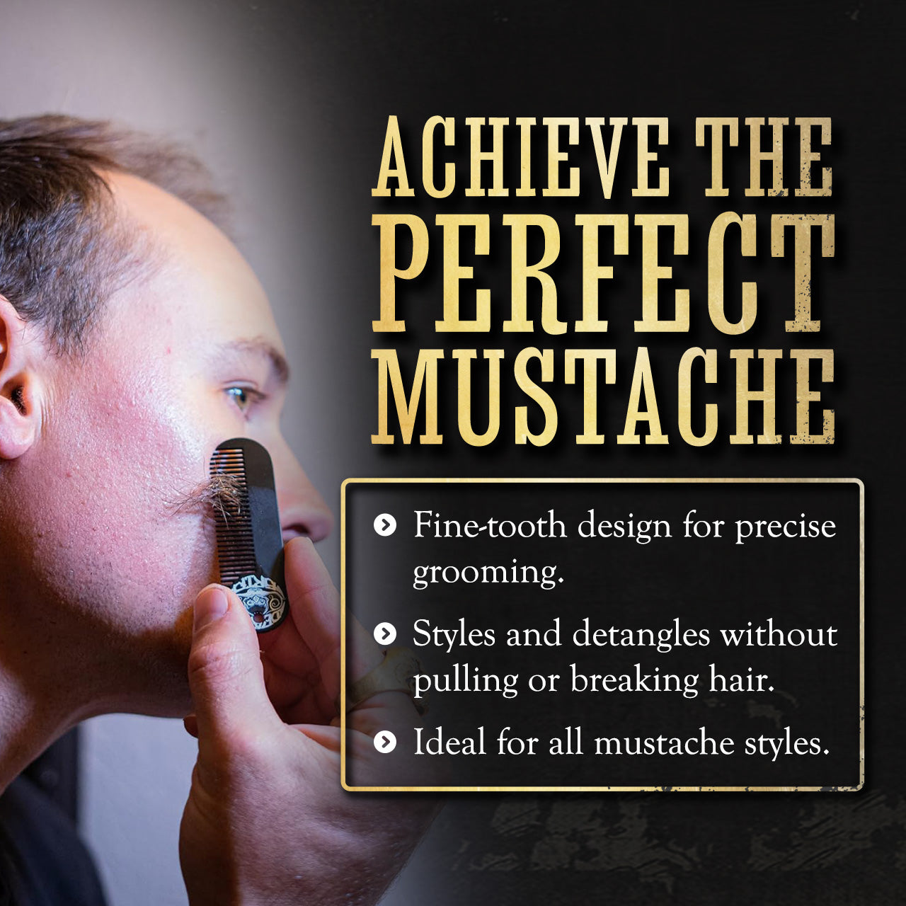 Details: Get our stronghold of Sudden Death mustache wax and a sturdy metal travel-size keychain mustache comb in one set! These are two essential items for the mustache grower who is on the go. If you are a man looking to take his mustache game to the next level Sudden Death is the mustache wax for you. The right ladies will take notice & people will talk to you regularly about your stylish mustache grooming skills. QUICK & EASY NO hairdryer or a heat source is necessary to warm the sudden death mustache wax. Just like the name, it's SUDDEN. ALL HAIR TYPES Perfect for men grooming blond, red, brown, black, grey, or white handlebar mustaches. LASTS ALL DAY Our mustache wax has a pliable semi-sticky tacky glue-like wax feel that holds those unruly stash whiskers in place for 8+ hours. Much better than beard oil or balm. Of course, every mustache is unique.