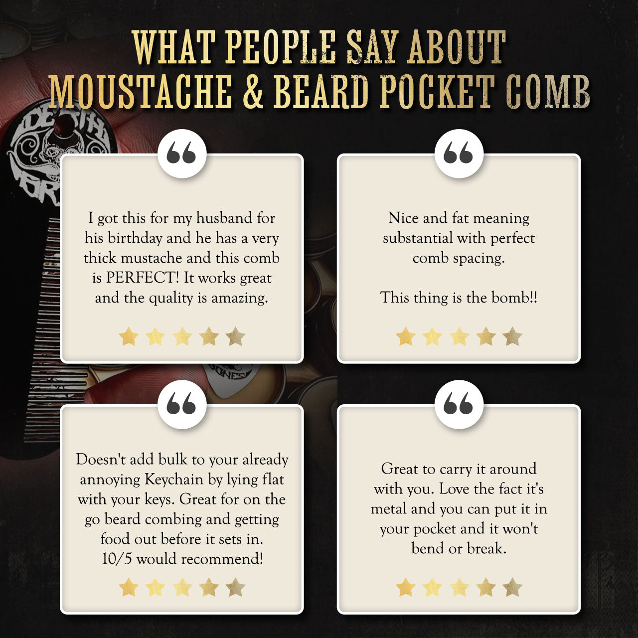 - Travel Pocket Size Comb -The Death Grip Mustache Keychain Comb is made from durable metal and is the perfect size for carrying on your keychain for easy access as you go about your day.