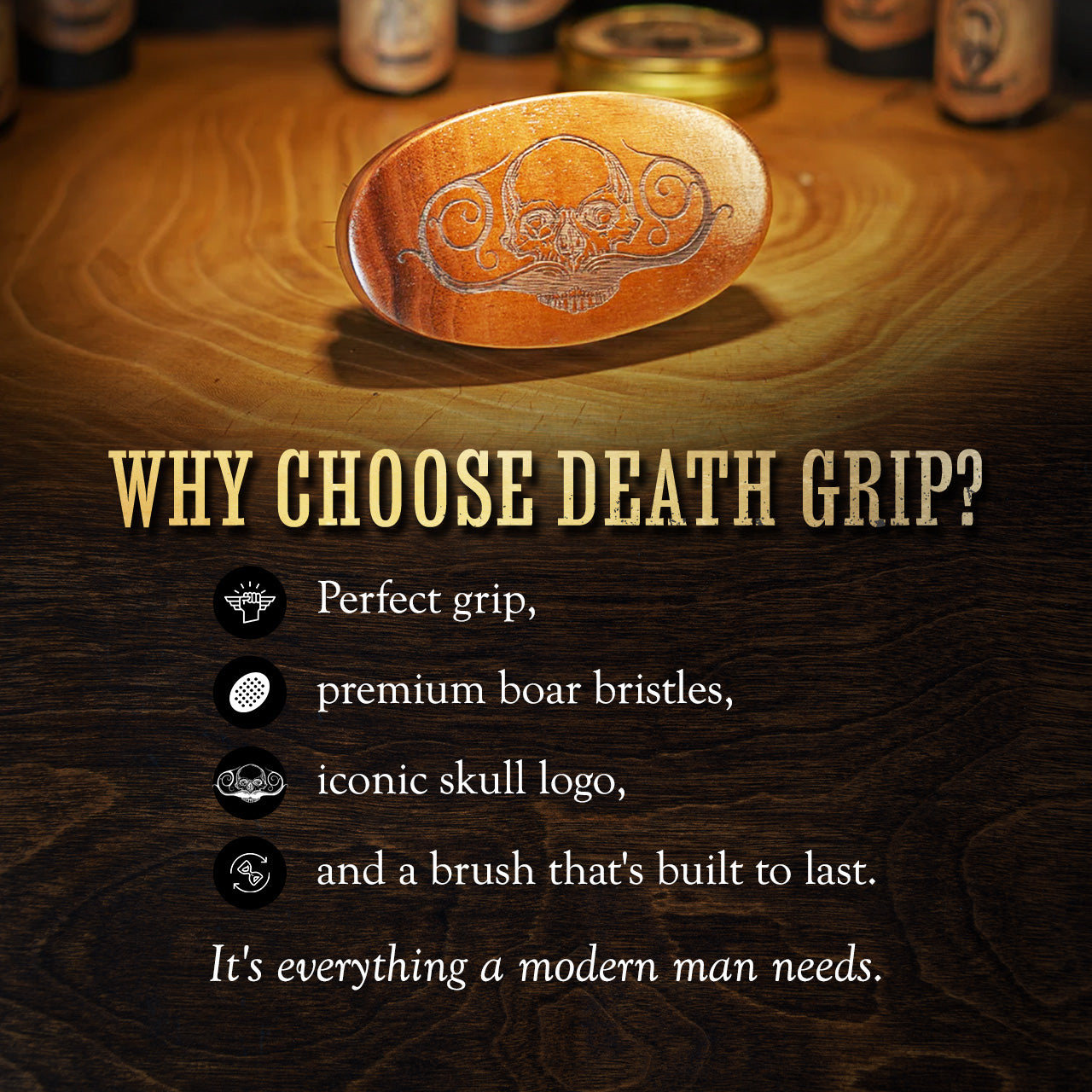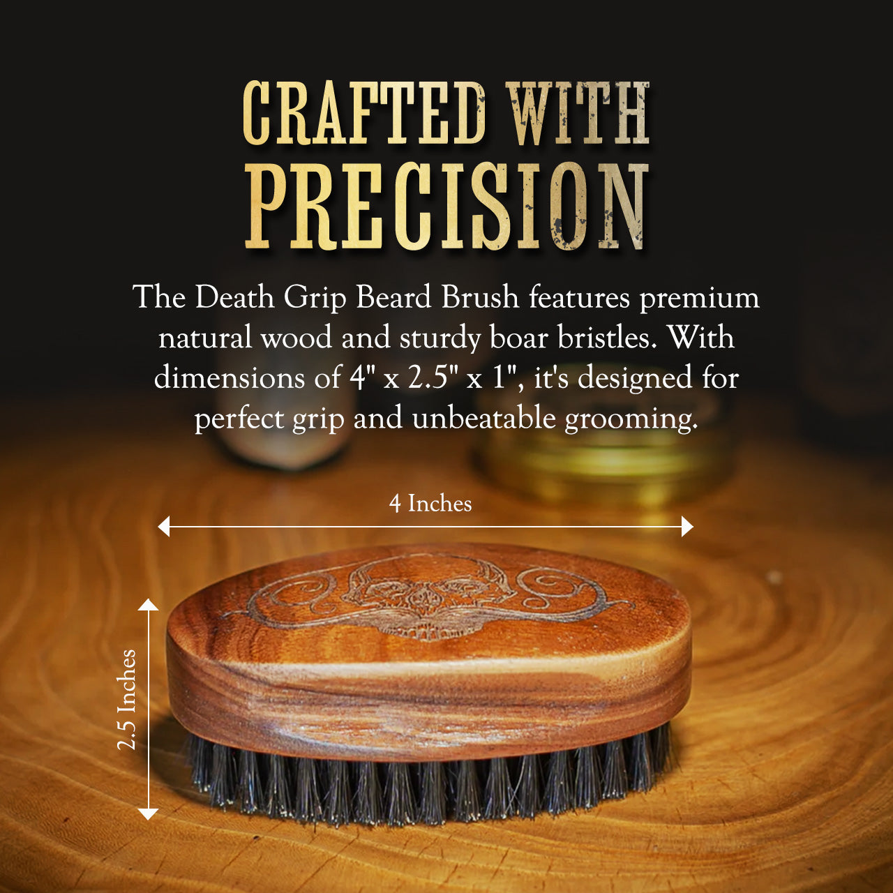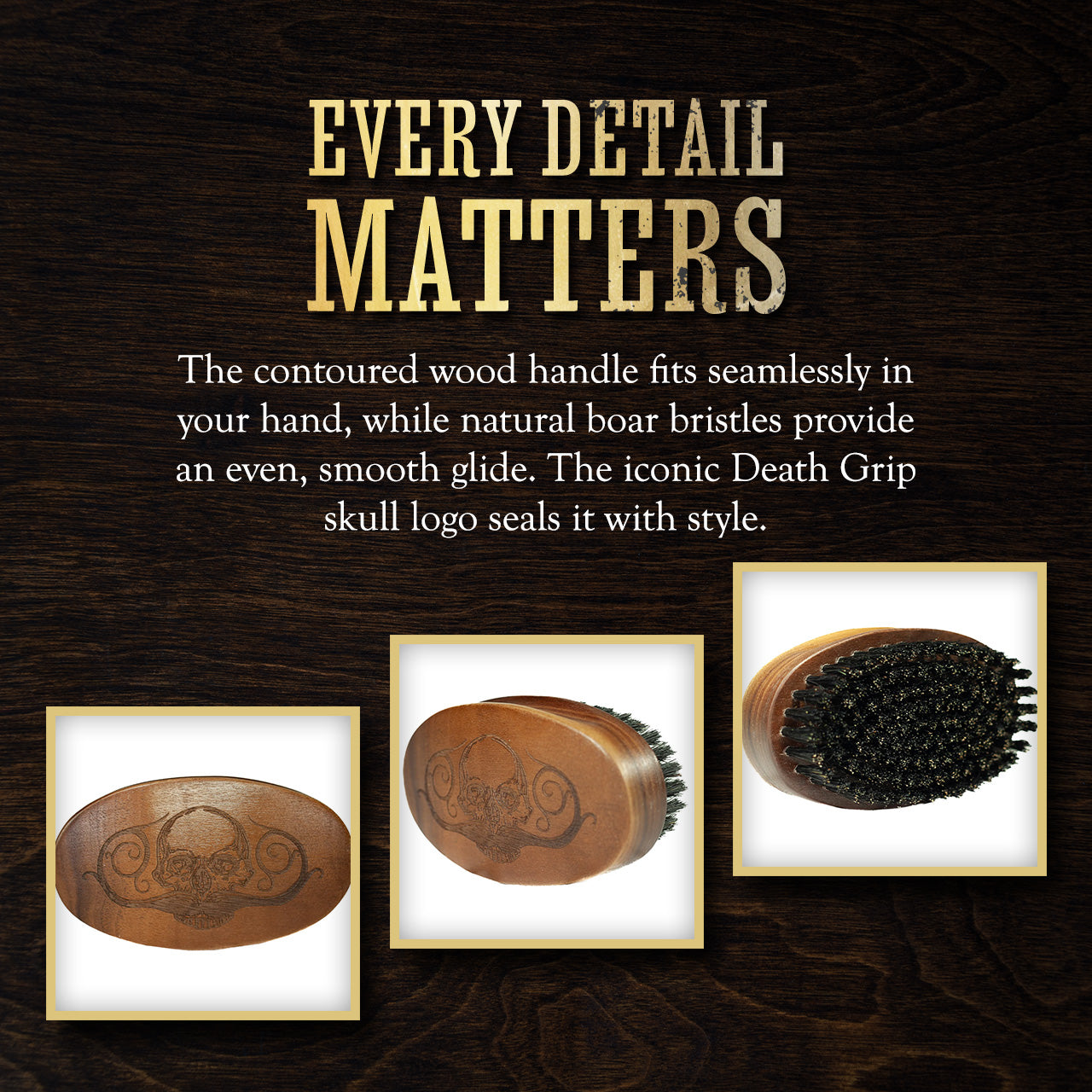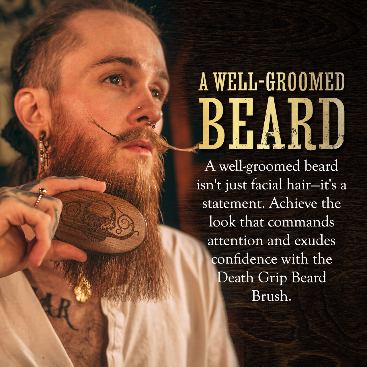 Let’s face it: the significance of a beard transcends beyond just appearance. A well-groomed, masculine beard speaks of confidence, authority, and sophistication. It tells a story, exuding an aura of rugged elegance. But achieving and maintaining that perfection requires effort and the right tool. This is where our Beard Brush shines. Designed with a perfect grip and showcasing the iconic Death Grip skull with mustache logo, this brush isn't just about grooming; it's about making a statement.