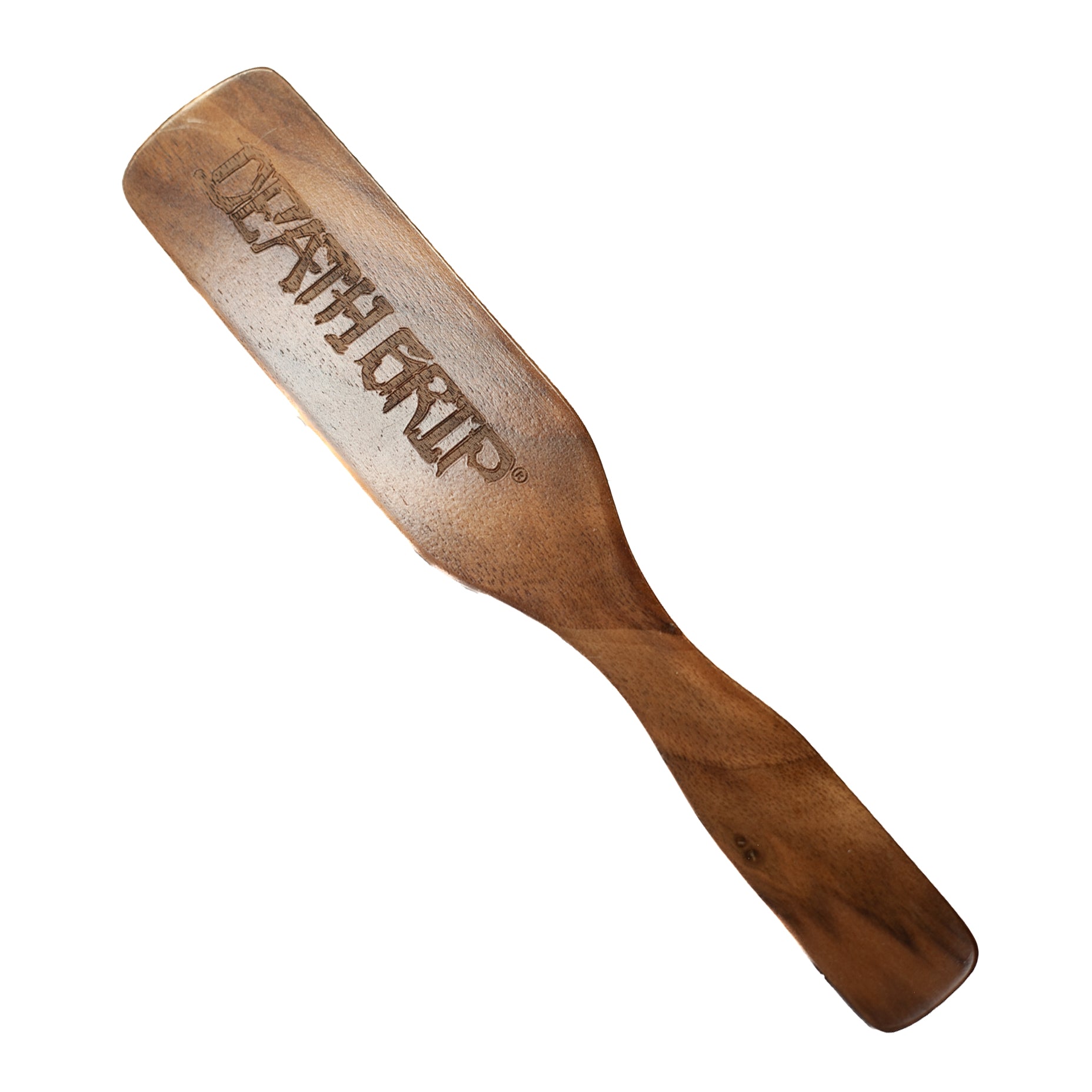 Engraved prominently onto this exquisite wooden handle is the Death Grip logo. This text, far from just being an aesthetic enhancement, stands as a symbol of the brush's commitment to quality, strength, and style. It represents the unique identity of the product and the user's discerning taste in personal grooming tools. The Death Grip logo engraving adds a personal touch to the brush, making it more than just another accessory - it's a statement.